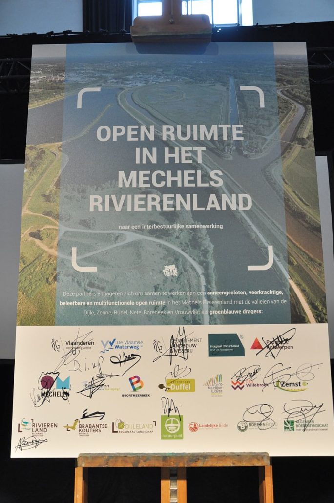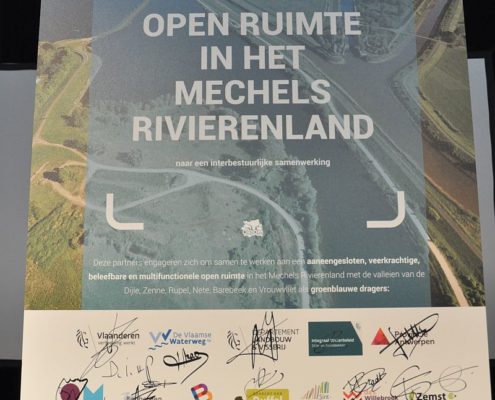 The morning ended with all partners signing the strategic project ORIOM, the charter for intergovernmental collaboration on the open space in Mechelen’s River district. In the afternoon, the various accomplishments could be viewed in practice. The bike rides, walks and boat trips in the sunshine topped the day off!